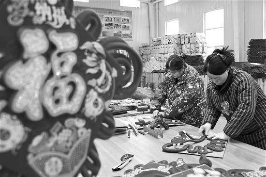 临近春节,位于山东省滨州市博兴县庞家镇的振兴乡村生态农业专业合作社联合社组织当地部分农民,在经过统一编织技术培训后上岗,赶制象征团圆吉祥的中国结,供应春节市场,一派忙碌景象。