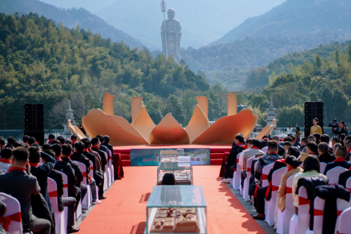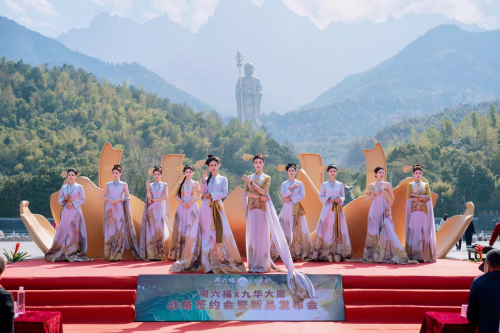 一场传统符号的时尚重生签约仪式选在九华山大愿文化园的乐台广场,山水环绕间,周六福与九华大愿正式官宣“文化IP×珠宝载体”战略合作。双方提出“让传统文化中的经典元素,成为年轻人触手可及的生活美学”,九华大愿的云雾、古建纹样、自然图腾被提炼为设计元素,融入黄金饰品中,既保留文化底蕴,又赋予现代简约的美感。