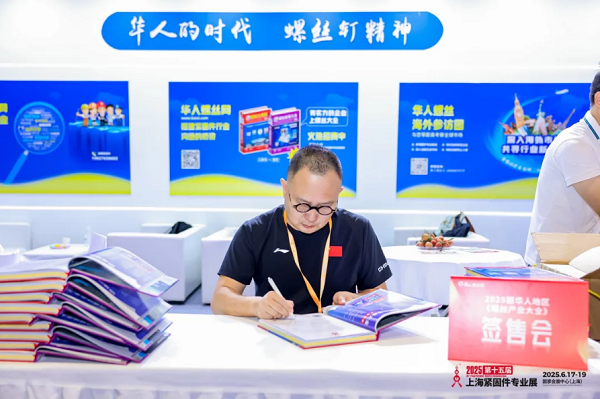 2025《华人地区螺丝产业大全》新书签售会,华人螺丝网创始人杨俊峰董事长与总经理袁小成携主创团队,现场分享编撰心路与行业洞见。