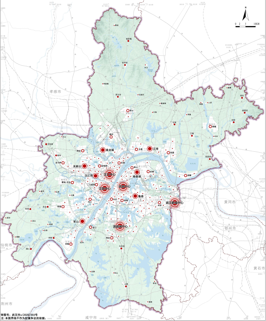 【图为武汉市域城乡生活圈和公共中心体系规划图(2021-2035年)】