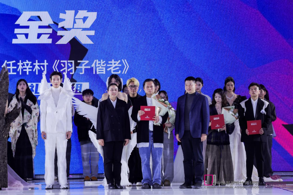 礼服组方面,金奖由任梓村斩获,其作品《羽子偕老》以别具一格的羽毛设计理念征服了评委与观众。