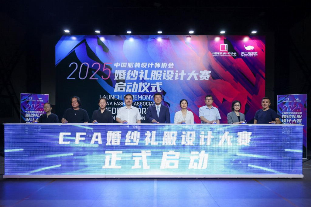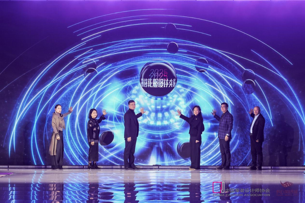 决赛现场,中国服装设计师协会专职副主席朱少芳,中国服装设计师协会专职副主席谢方明,中国服装设计师协会副主席、北京玫瑰坊时装定制有限责任公司董事长、艺术设计总监郭培,苏州城市建设投资发展(集团)有限公司副总经理王意宏,绝设品牌创始人、中国服装设计师协会品牌委员会委员、中国服装协会国风时尚专业委员会副主任许传海,中国婚纱礼服设计研究中心艺术总监袁利共同发起了《捍卫原创价值 赋能产业发展》的倡议,呼吁全行业共同尊重与保护知识产权,携手构建公平有序、健康可持续的产业生态。