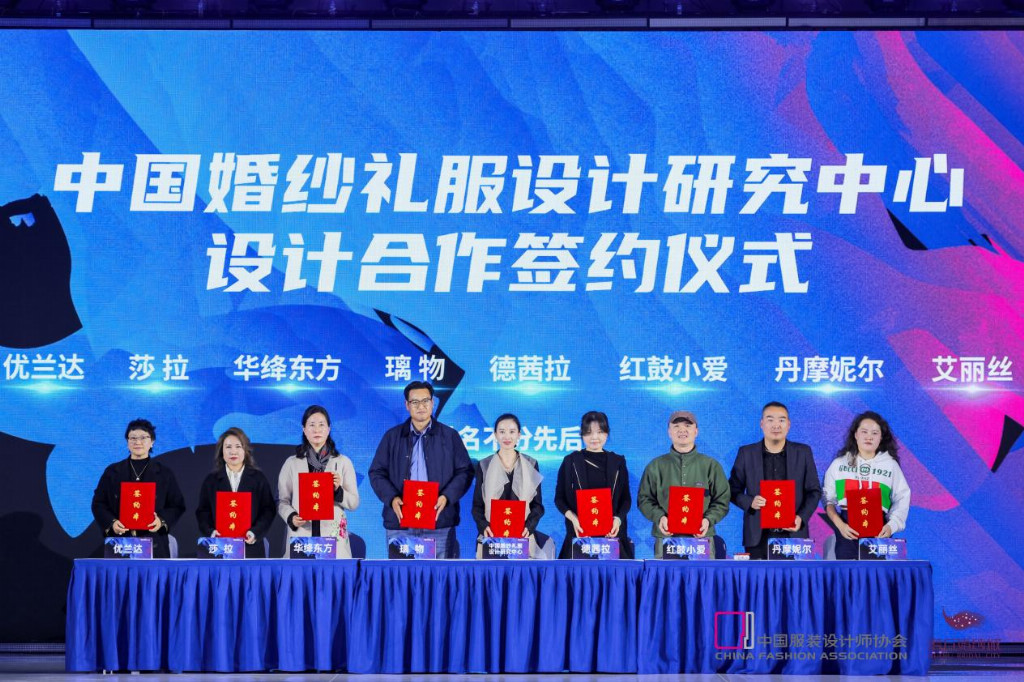 此外,中国婚纱礼服设计研究中心向入围设计师颁发聘书,并与虎丘婚纱城入驻品牌签约,共同聚焦工艺革新、版型优化等关键环节,推动设计作品从创意孵化到商业落地的全链条转化。