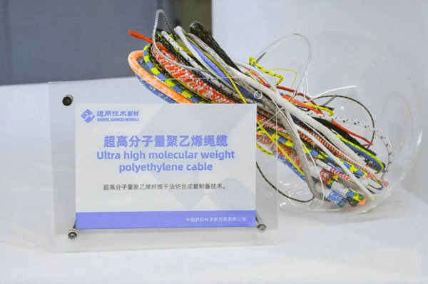 通用技术新材还展示了超高分子量聚乙烯纤维干法纺丝成套制备技术。通用技术中纺院在高分子量聚乙烯纤维领域的研发已深耕多年。港珠澳大桥合龙时所用的吊带即由超高强聚乙烯纤维制成。此外,医用可吸收缝合线相关技术、国产聚苯硫醚纤维产业化成套技术、新一代聚己内酰胺纤维产业化技术、生物可降解PBAT连续化成套装备技术等创新技术等。