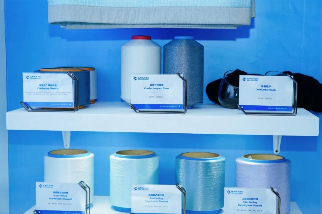 重点推介可达纶®导电纤维,以高性能物质为导电介质,具有低电阻率、耐水洗、导电性能持久等特性,广泛应用于防静电工作服、职业工装、特殊作业场所、西服、手套等领域,并可拓展应用于机器人柔性皮肤。同时展出凉感聚乙烯纤维、微多孔涤纶纤维等产品,持续拓展运动、家纺、医疗、产业用等多领域应用边界。