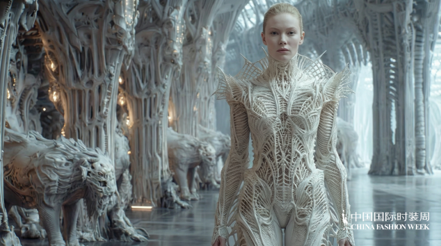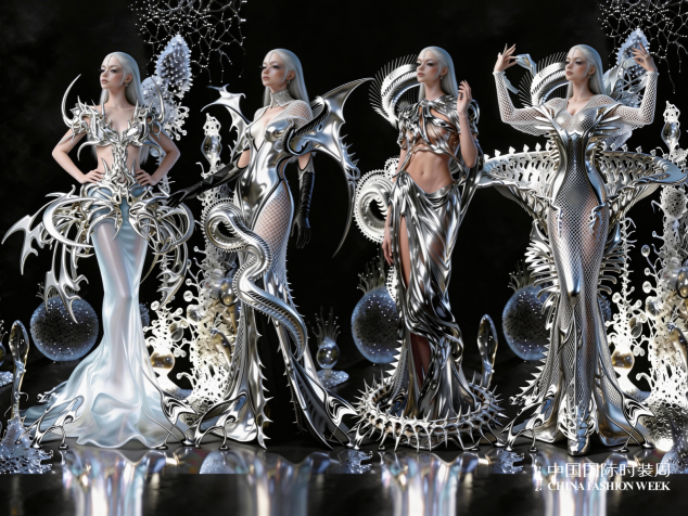 实体秀场之外,数字时尚成为“锐意新生”的重要载体。近40位青年数字设计师带来27部作品,运用AI生成、数字孪生、虚拟面料模拟等前沿技术展开先锋探索,推动数字时尚从趋势概念成长为独立表达语言。