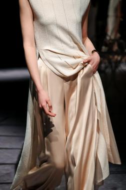 本次大秀围绕“重塑经典·当代优雅”的核心理念,以三幕剧形式讲述女性于多元场域中的优雅魅力:第一幕“经典与经典”,凝练三十年经典沉淀,展现传承与质感;第二幕“成长与绽放”,将佛罗伦萨的巴洛克艺术与建筑语言融入当代设计,以圣百花大教堂的镂空图案与极简线条讲述女性成长的多元性;第三幕“无界与优雅”,以先锋姿态打破传统工艺的应用边界,展现女性如百合般多姿的人生与未来的包容开放性。经典与创新在同一空间碰撞、交融,绽放内蕴女性优雅精神的时装风尚。