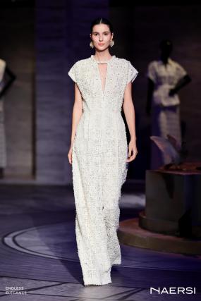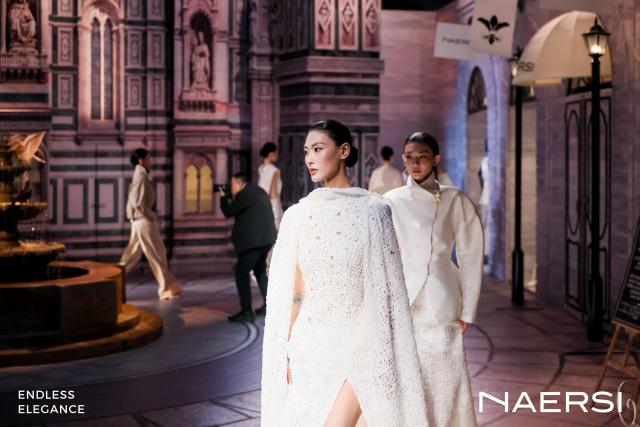 在工艺呈现上,NAERSI以佛罗伦萨的百年徽记“百合”为灵感,糅合西方古典美学与东方优雅意境,重磅推出佛罗伦萨Merletto丝绣工艺系列等时装臻作。通过佛罗伦萨针绣、艺术镂空、立体格艺等细腻笔触,NAERSI将31年品牌积淀与西方顶级匠艺深度融合。大秀特设的优雅工坊静态展区,以经典工艺区、非遗匠艺区、优雅精神区三重维度,构建从技艺到精神的完整叙事,让宾客得以近距离感受高级时装背后的匠心传承。这既是NAERSI对品牌初心的坚守,也是其在赢家时尚集团对未来发展路径的深刻思考与生动诠释。