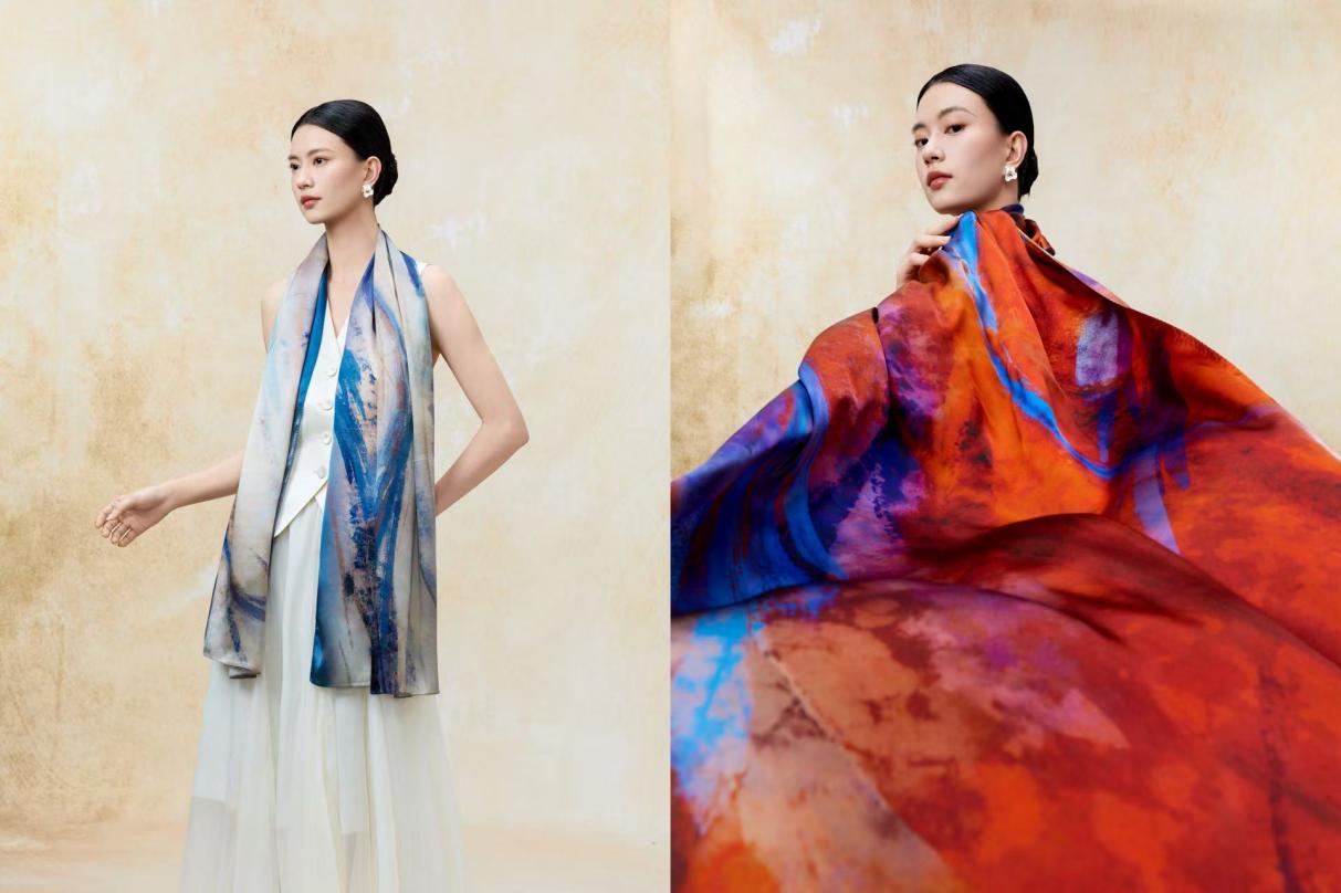 作为经典海派时尚品牌的当代诠释者,上海故事与第十六届北京国际电影节电影与时尚单元的首次跨界合作,堪称一次“丝路美学”的当代复兴。“敦煌系列”丝巾,并非简单移植壁画图案,而是一场对千年艺术遗产的深度对话与创造性转译。 该系列从敦煌壁画中萃取灵感——飞天的飘逸弧线被转化为流动的佩饰韵律,藻井的繁复结构经解构后重组成现代几何图形,大漠落日、石窟矿彩的浓郁色调,则通过高级真丝与数码印花工艺得以细腻还原。