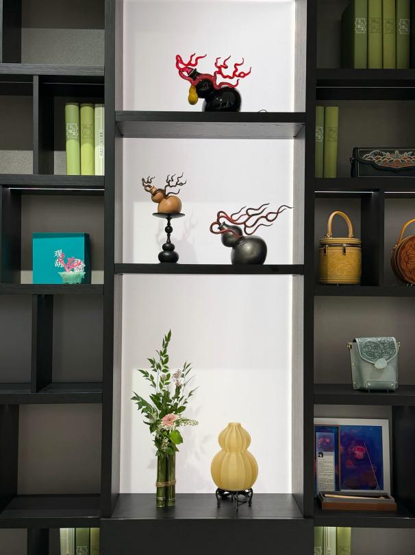 本次东方雅集美学风格展汇聚多品类东方美学创新品牌新一季的特色产品,融贯东西美学的家居品牌午观携元《园景》、《竹境》等表达春意等产品系列;潮流新中式品牌观葫呈现了代表性的赤焰和陌路狂松等经验的葫芦艺术装置作品;东方风韵代表设计作品有中国国际时装周十佳设计师品牌ANNBOO男装、梅赫理霜高级女装及中国国际时装周金顶针奖获得者梁子的香云纱代表品牌天意·TANGY;而现代东方新锐配饰类产品集结叙春ISPRING、nice jewelry、晶仙人等品牌,各展了年轻一代的东方设计巧思;香道领域有传承自然古法项技艺的鸣谦堂,与弘扬中华千年香文化的深厚底蕴的仙香遇。